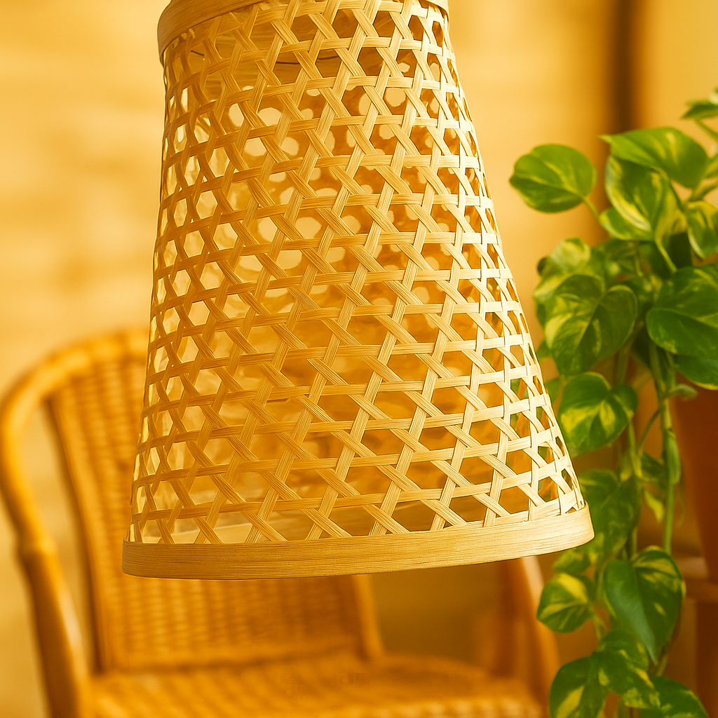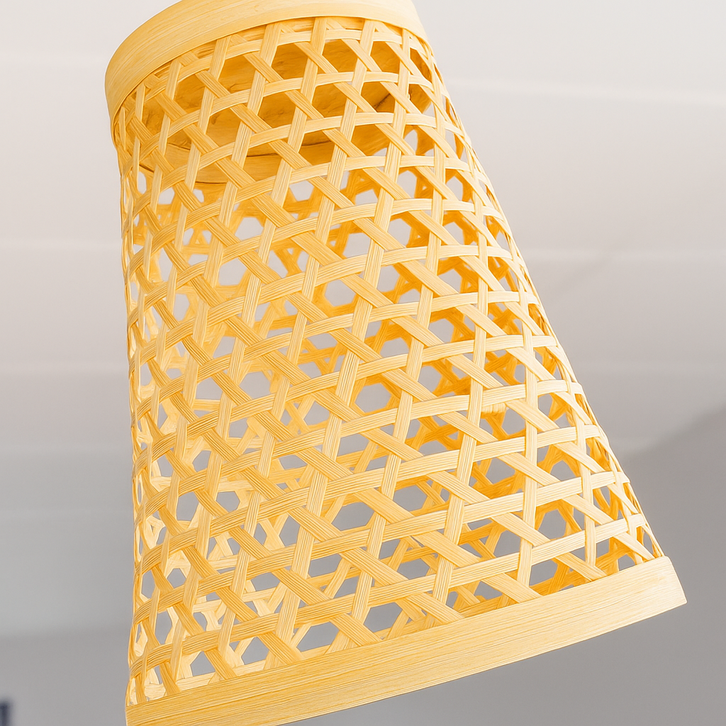 Design: Cone-shaped lampshade with artistic hexagonal weave