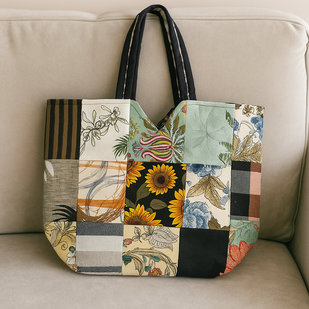 Design: Unique multicolor patchwork with floral, striped, and abstract prints