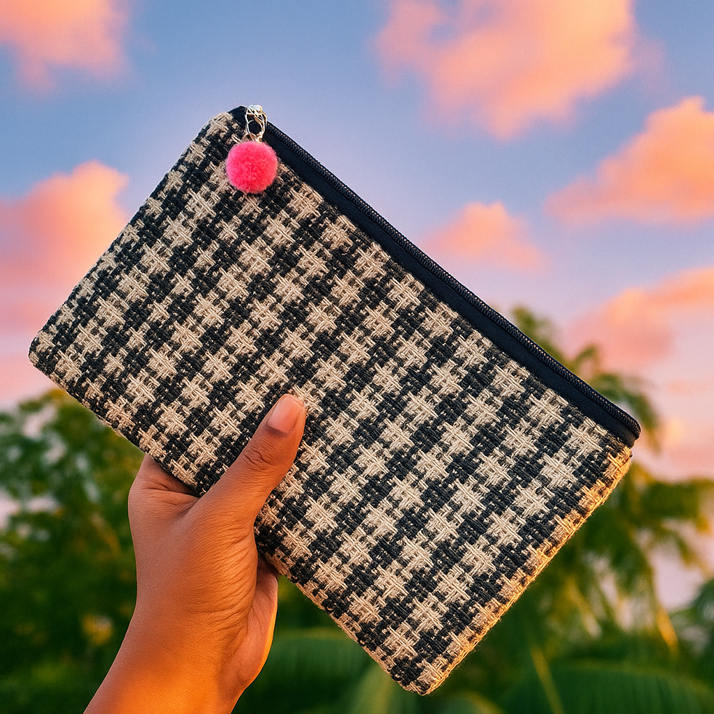 Material: Crafted from eco-friendly jute fabric with a classic black and white checkered weave