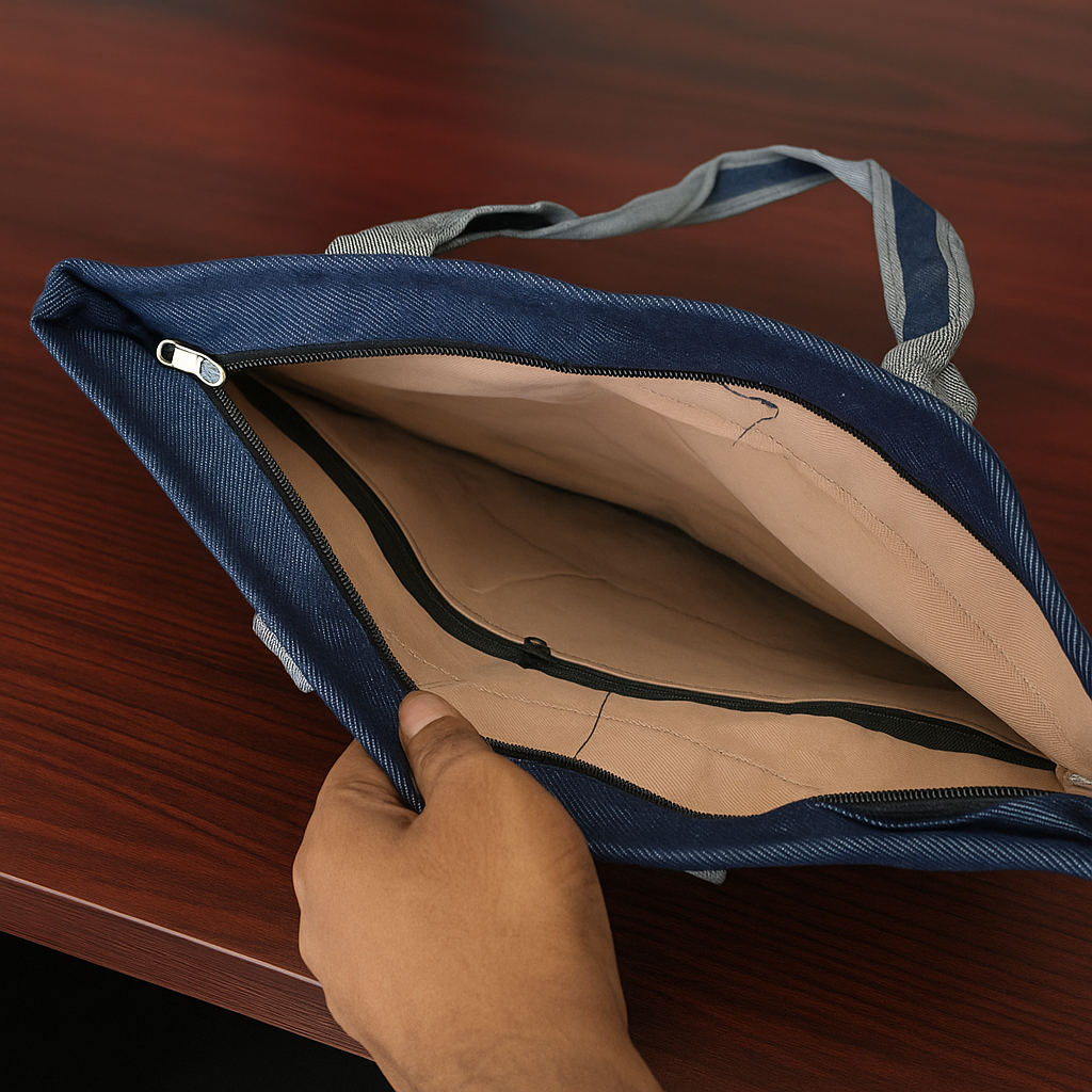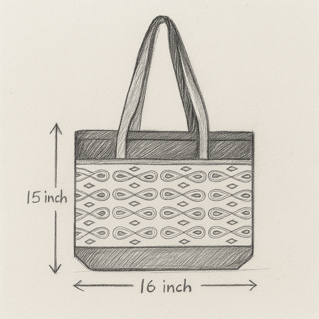 Handles: Dual-layer grey & blue cotton handles for comfortable carry