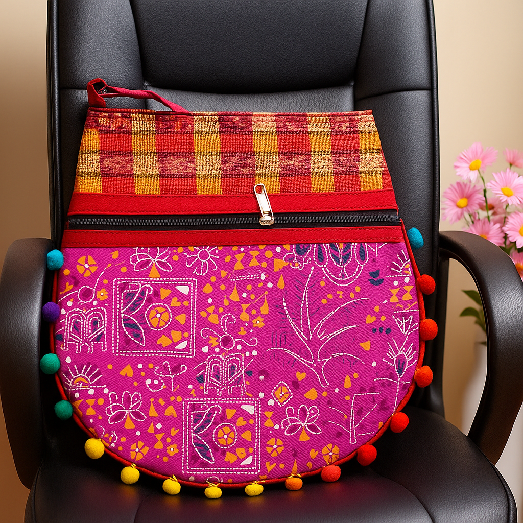 Special Feature: Vibrant patchwork + pom-pom detailing for a bold ethnic look