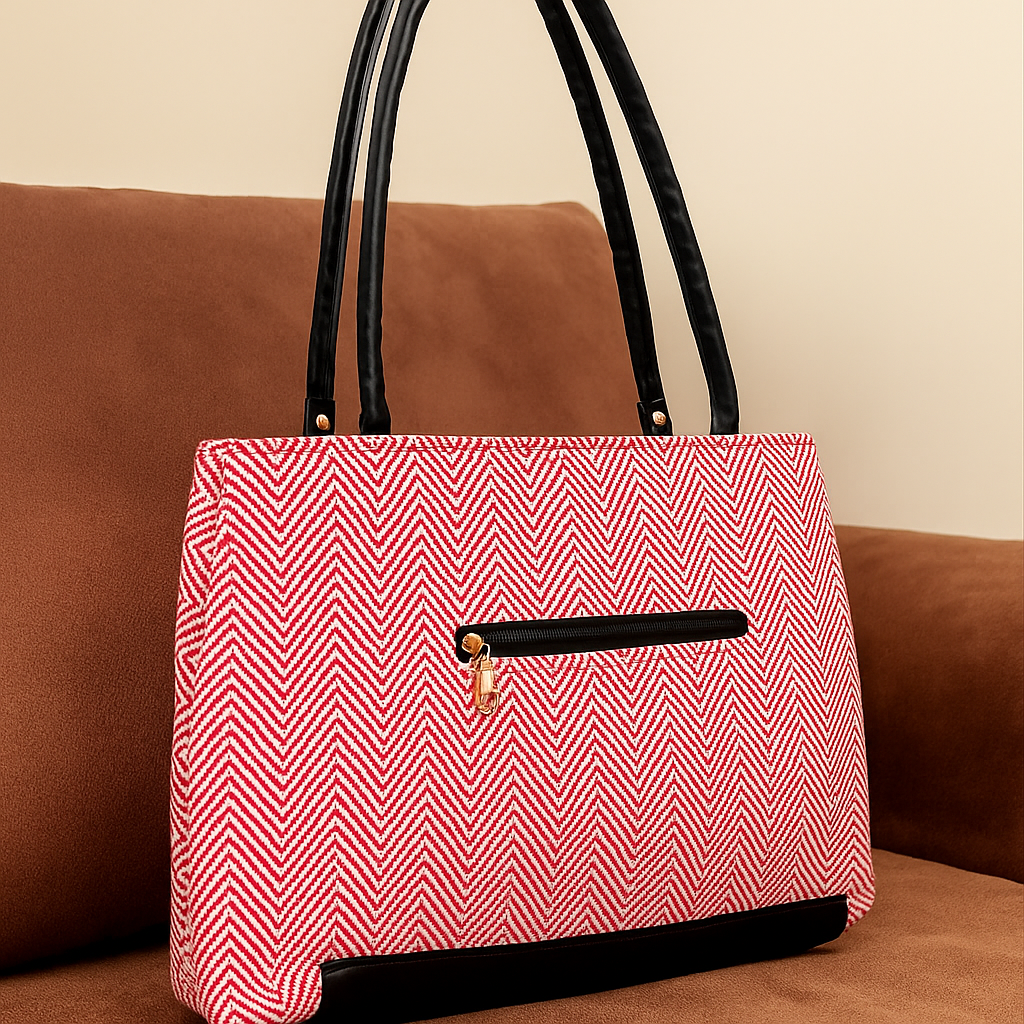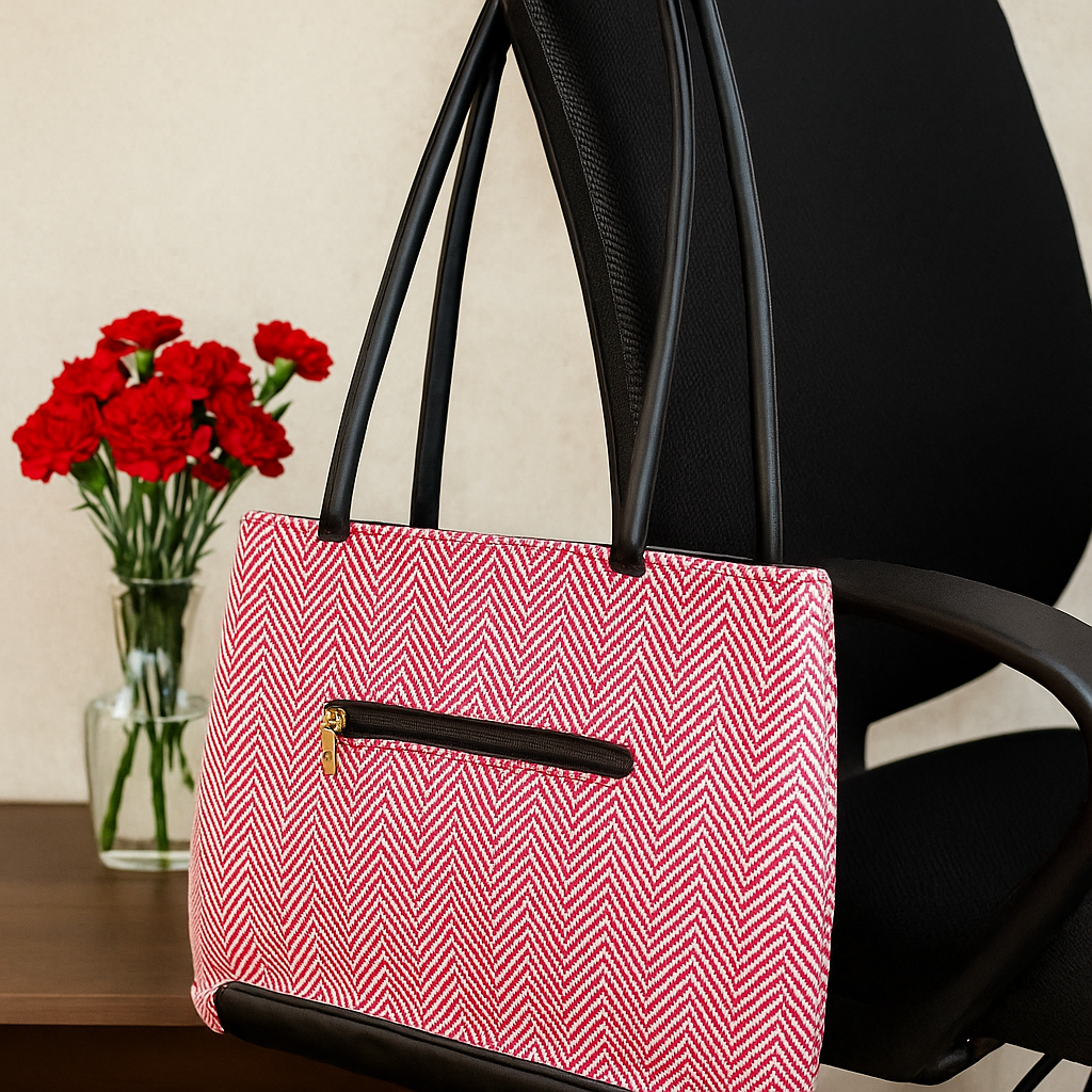 Design: Vibrant pink chevron pattern with elegant black detailing