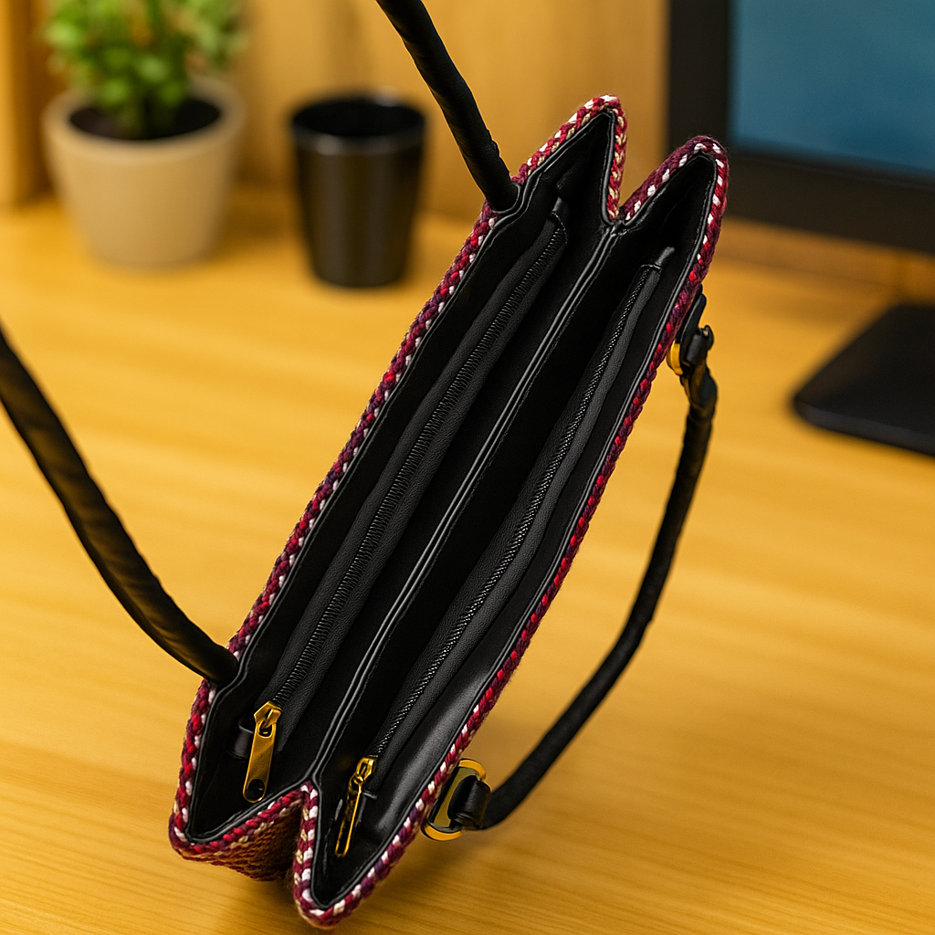 Handles: Dual long black leatherette straps for easy shoulder carry