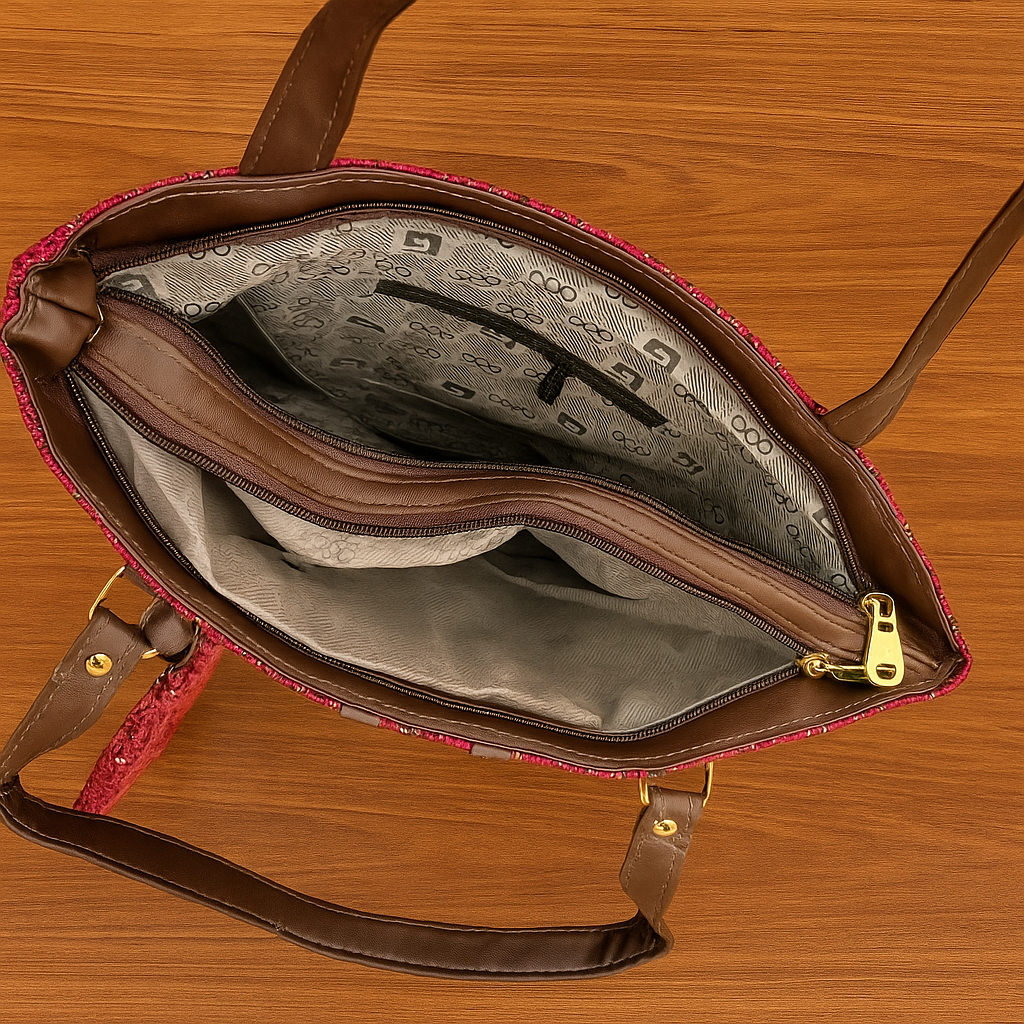 Handles: Brown leather-like dual straps – strong and comfortable